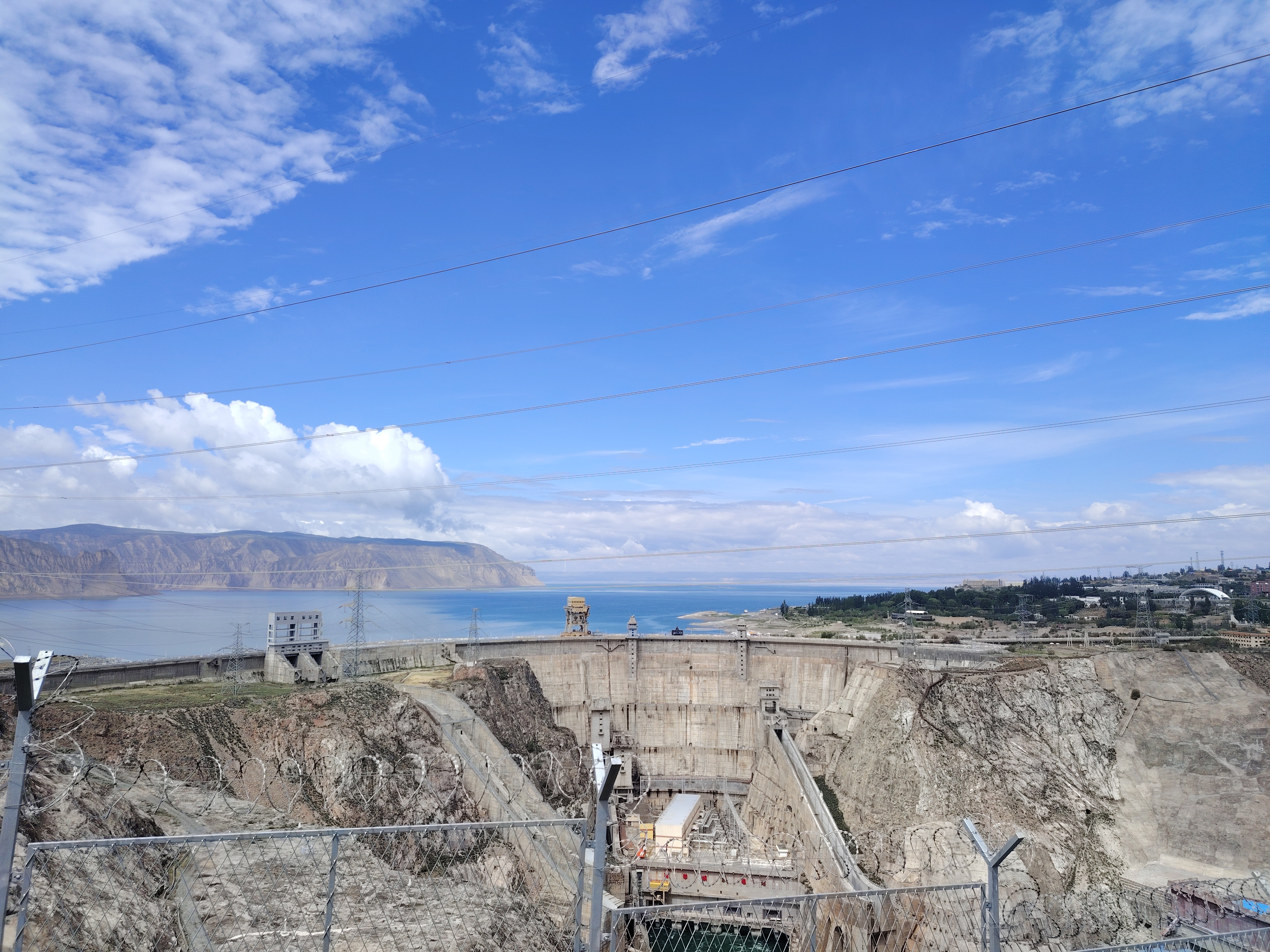 站在龙羊峡水利枢纽观景平台,巨大的水库在阳光照耀下波光粼粼,黄河水正经水轮发电机能量转换,缓缓流向峡谷深处。