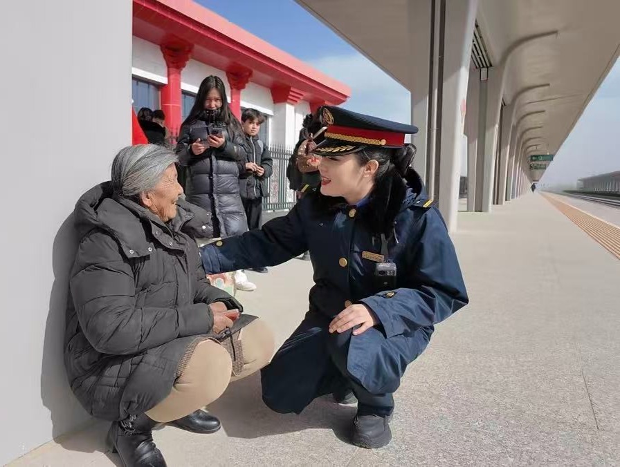 对茹则古丽来说,今年春运的意义有些不同。四年前,她是站台上看着第一列火车呼啸而来、热泪盈眶的见证者;如今,她是身着笔挺路服、目送乡亲们远行的铁路人。